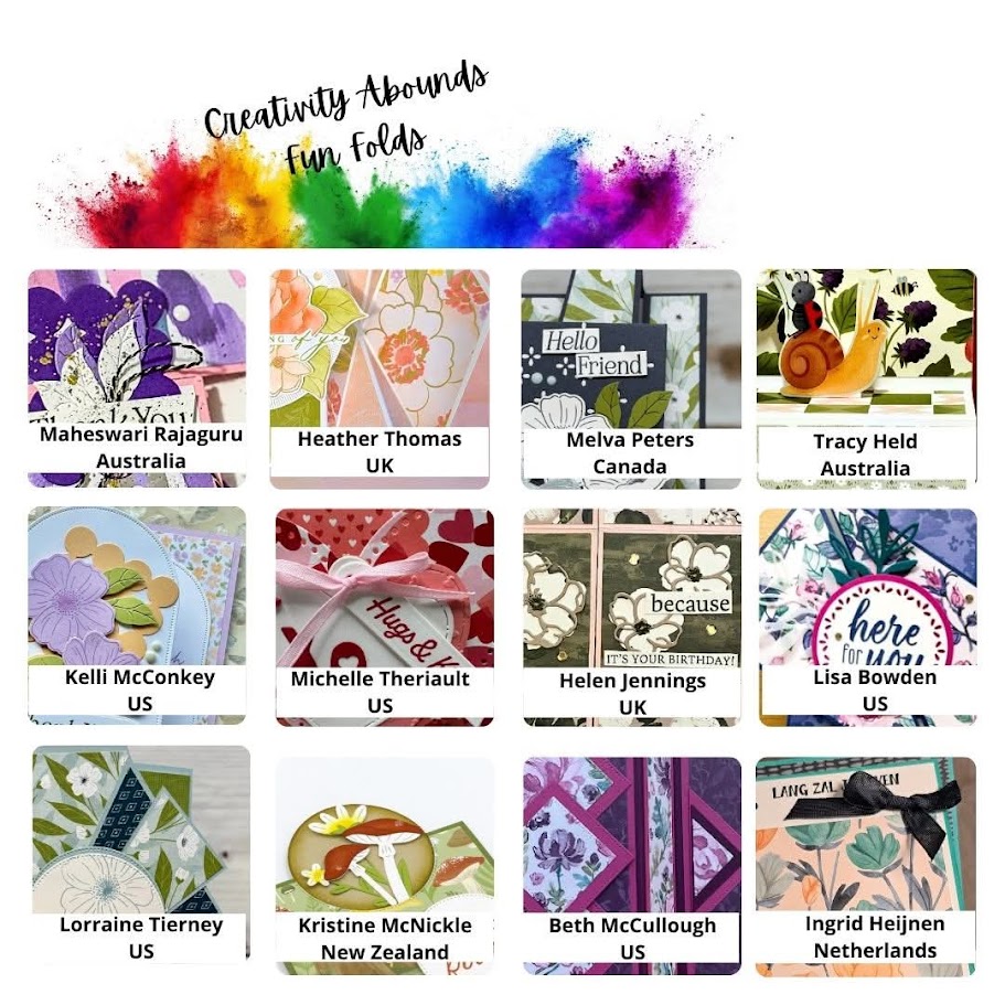 It’s time for the February Creativity Abounds Blog Hop! We are a group of Stampin’ Up! Demonstrators from all around the world who are here to share our creative ideas with you. We hope to inspire you this month with FUN FOLDS! Who doesn’t love a good fun fold?! You may be starting here, or you may have come from someone else’s blog. Either way, there is a list at the end of this post to help you “hop” to all the different blogs and get many amazing ideas. We all have our countries listed, so if you are looking for a demonstrator in your country, we would love to help you with your Stampin’ Up! shopping or if you would like to join our Stampin’ Up! teams!